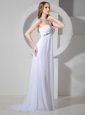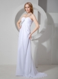 Beaded Decorate Shoulder Brush Train White Chiffon Prom Dress