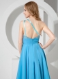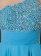 Beaded Decorate Shoulder Empire Aqua Blue Prom Dress