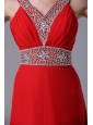 Beaded Decorate Shoulder Empire Chiffon Red V-neck Prom Celebrity Dress Floor-length