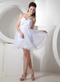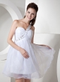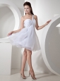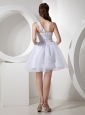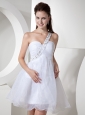 Show off your flirty and sassy side at any special occasion in this fabulous short one shoulder dress. A sparkling single strap is adorned with beadings above the sweetheart neckline and creat a twirl on the ruched bodice. An elegant white party dress for homecoming or a cocktail party for you. Organza layers make this short skirt more charming.