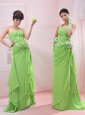 Home >  Prom Dresses >  Popular Prom Dresses > Beaded Decorate Shoulder Spring Green Chiffon Halter Brush / Sweep Empire Prom Dress