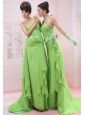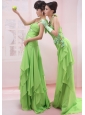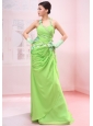 Beaded Decorate Shoulder Spring Green Chiffon Halter Brush / Sweep Empire Prom Dress