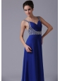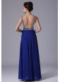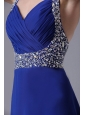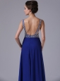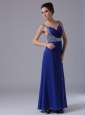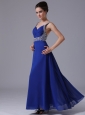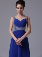 Beaded Decorate Shoulder Straps Chiffon Royal Blue maxi Prom Dress