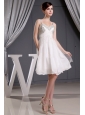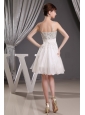 This simply elegant white dress will make your party the unique one and leave a last long wonderful memory. The fitted, straps bodice is adorned with sweetheart neckline and exquisite ruches and dazzling beadings. This A-line skirt flows naturally and smooth with scattered beadings on the chiffon and organza mini-length skirt. A zipper up back completes this fabulous dress. What are you looking for? Bring it to your home with no hesitation.