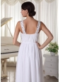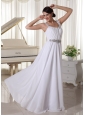 Beaded Decorate Straps and Waist White Chiffon Empire Prom Dress For Foramal Evening