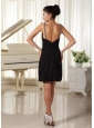 Beaded Decorate Straps Black Ruched Mini-length Homecoming Gowns
