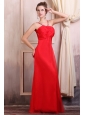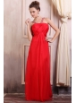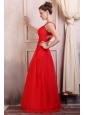 Beaded Decorate Straps Chiffon Long Red Prom Dress with Ruche