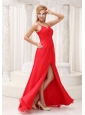You will fall in love with this dress when you look at it at the first time. This floor length prom dress features a sweetheart neckline with a fitted bodice. Two beaded straps will catch the light beautiffuly. The flattering ruches criss-cross with each other in the bust area accentuate your curve. You will be the most sexy girl in this dress not only for the sexy slit but also for the sexy back.