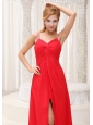 Beaded Decorate Straps High Slit Prom / Evening Dress For 2013 Chiffon Floor-length