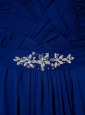 Your charming face will be all the guests see in this gorgeous dress. Peacock blue dress with sweetheart neckline, heavily beaded straps and asymmetrically ruched bodice. The ruched wasistband with beadings in the middle contours your curve. The floor-length skirt sways elegantly and freely when you move.