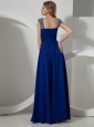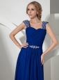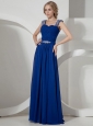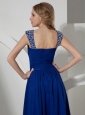 Beaded Decorate Straps Peacock Blue Empire Prom Dress Chiffon