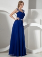 Home >  Prom Dresses >  Elegant Prom Dresses > Beaded Decorate Straps Peacock Blue Empire Prom Dress Chiffon