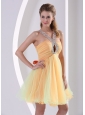 Beaded Decorate Straps Ruched Bodice Cute Prom Dress Colorful Organza