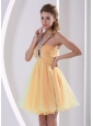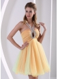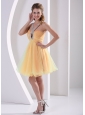 Multiply design is employ on this fashionable dress, and it does shake your heart! This mini dress features a gorgeous halter top forming a keyhole in the centre to two straps in the back teamed with dazzling beading on the ruched bodice. What rock you is a beautifully sheer organza skirt. The skirt with a loose comfortable fit that let's you dance the night away in style. Whatever choice you make, we can offer the stunner for you!