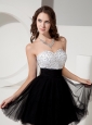 Home >  Special Occasion Dresses >  Homecoming Dresses > Beaded Decorate Sweetheart Black Tulle Mini-length Short Prom Dress