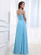 Beaded Decorate V-neck and Baby Blue For Simple Custom Made Prom Dress