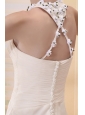 You'll be the envy of the evening in this fabulous chiffon gown. This fabulous white prom dress features a V-neckline trimmed with floral ornaments. Soft pleating hugs your body creating a sheath style that highlights your slender stature. The cross over bands and button up closure in the back add more charm to this already lovely gown. A wise choice for your special day!