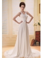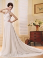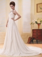 Home >  Wedding Dresses >  Beautiful Wedding Dresses > Beaded Decorate V-neck Empire Chiffon Court Train Buttons Stylish Wedding Gowns