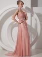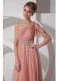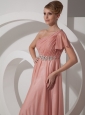 Beaded Decorate Waist Brush / Sweep Chiffon One Shoulder Empire Prom Dress