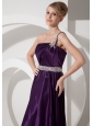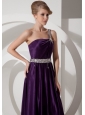Home >  Prom Dresses >  Cheap Prom Dresses > Beaded Decorate Waist One Shoulder Empire Purple Elastic Woven Satin Prom Dress Beaded Decorate Shoulder