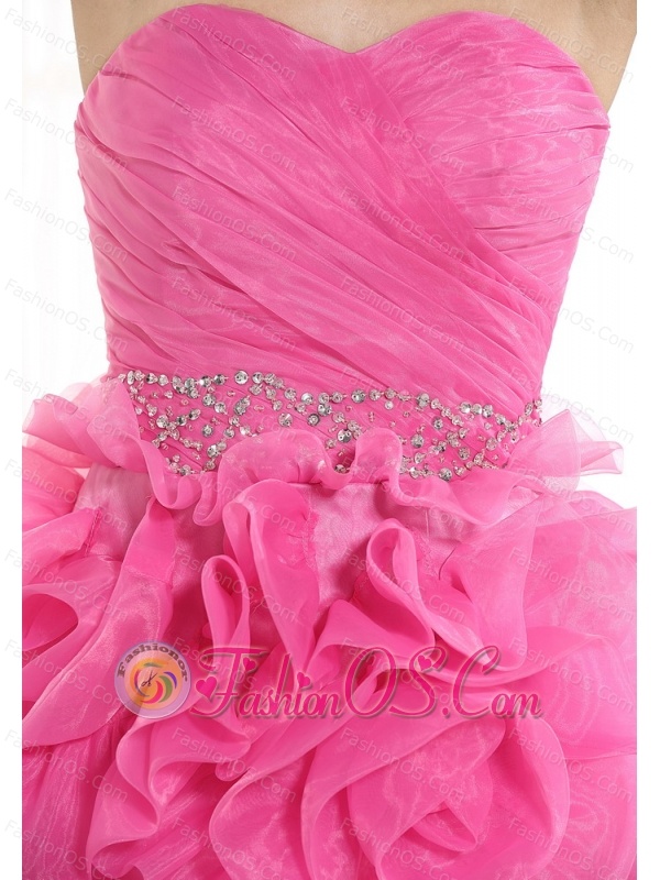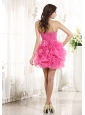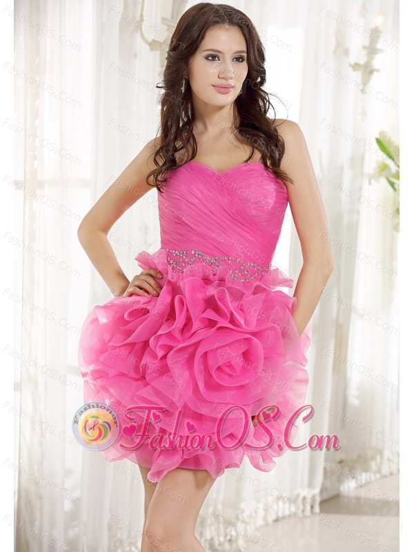 Home >  Special Occasion Dresses >  Cocktail Dresses > Beaded Decorate Waist Ruch Hand Made Flower Organza Hot Pink Mini-length 2013 Prom / Homecoming Dress