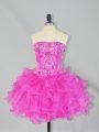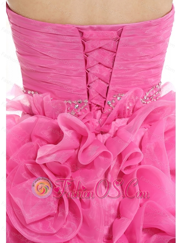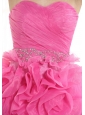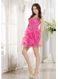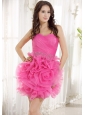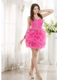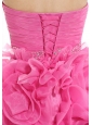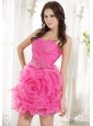 Beaded Decorate Waist Ruch Hand Made Flower Organza Hot Pink Mini-length 2013 Prom / Homecoming Dress