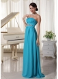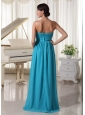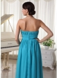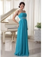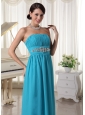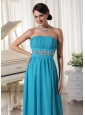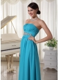 Beaded Decorate Waist Ruched Teal Chiffon Prom Dress With Brush Train