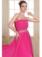 Home >  Prom Dresses >  Fashionable Prom Dresses > Beaded Decorate Waist Strapless Chiffon Empire Prom Dress with Silt