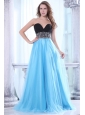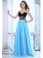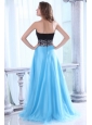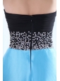 Beaded Decorate Waist Sweetheart Black and Aqua Blue Prom Dress