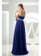 Beaded Decorate Waist Sweetheart Empire Chiffon Floor-length Royal Blue Prom Dress