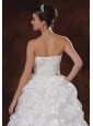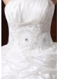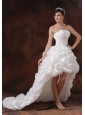 The most bride at your wedding party in this white wedding dress! a strapless neckline and ruched bust to creat a fuller bustline. The broad waitline is accented with glittering beading. The high-low style skirt have rippling wave ruffles and features a knee length in the front and cascades around to sweep to floor in the back. A lace up corset style closure in the back secures the dress in place. You will dump on this white wedding gowns!