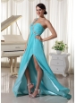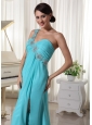 Home >  Prom Dresses >  Elegant Prom Dresses > Beaded One Shoulder Turqupise Blue Prom Dress With High Slit Brush Train Chiffon