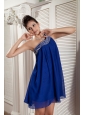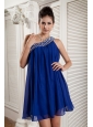 Home >  Special Occasion Dresses >  Homecoming Dresses > Beaded Peacock Blue Empire Prom / Homecoming Dress One Shoulder Chiffon Beading Mini-length
