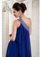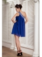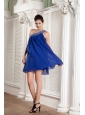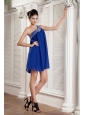 Beaded Peacock Blue Empire Prom / Homecoming Dress One Shoulder Chiffon Beading Mini-length