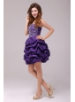 Beaded Purple Short Prom Dress with Pick-ups Mini-lengt