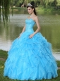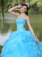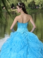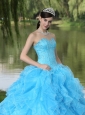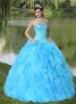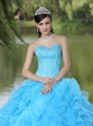 Home >  Quinceanera Dresses >  Fashionable Quinceanera Dresses > Beaded Ruffles Layered Decorate Famous Designer Quinceanera Dress With Sweetheart Aqua Skirt