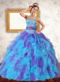 Beaded Strapless Multi Color Quinceanera Dresses with Ruffles and Sash