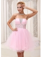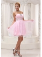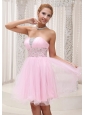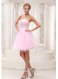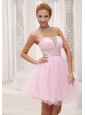Beaded Up Bodice Lovely Baby Pink Prom / Cocktail Dress Strapless With Mini-length