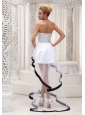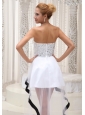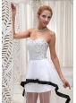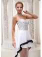 This unique prom dress from Fashionos features sweetheart neckline. The whole bodice is made of sequined fabric, and the back is finished with zipper style. And the diaphanous organza fabric in the bodice is edged with black hemline. The mini skirt inside the diaphanous add cuteness. No matter what occassion you attend, you'll be the spotlight among the crowd.