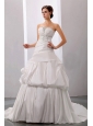 Beading A-Line / Princess Strapless Court Train Wedding Dress Taffeta