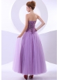 Look heavenly modest in this lavender homecoming dress from Fashionos. If you're looking for a beautiful and elegant gown for a destination formal evening, prom or pageant, this strapless gown can never be the bad choice for you. A fitted, strapless bodice made of beadings and appliques accenting the straight neckline and adds grace to this wonderful prom gown. The tulle ankle-length skirt gives this dress a touch of nature.