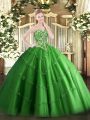 Beading and Appliques Quince Ball Gowns Green Lace Up Sleeveless Floor Length