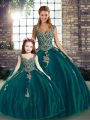 Beading and Appliques Sweet 16 Quinceanera Dress Peacock Green Lace Up Sleeveless Floor Length