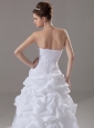 Stunning and sophisticated are two words to perfectly describe this white wedding dress.The fitted bodice is adorned with a sweetheart neckline,exquisite beadings and glamorous appliques,while the floor lenght skirt in layers flows freely to create a lovely court train.The back completes with lace up.You will gain the most attention in this fabulous design.