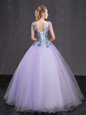 Beading and Belt Sweet 16 Dresses Lavender Lace Up Sleeveless Floor Length