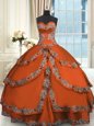 Home >  Quinceanera Dresses >  Clearance Quinceanera Dresses > Beading and Embroidery and Ruffled Layers 15 Quinceanera Dress Rust Red Lace Up Sleeveless Floor Length