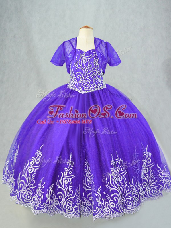 Home >  Special Occasion Dresses >  2019 Little Girl Pageant Dresses > Beading and Embroidery Little Girls Pageant Dress Purple Lace Up Sleeveless Floor Length