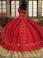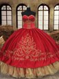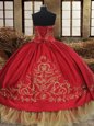Beading and Embroidery Quince Ball Gowns Wine Red Lace Up Sleeveless Floor Length