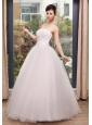This fabulous wedding dress has all the elements to make it an instant classic. The fitted bodice features a straightline neckline and beaded embellishment and hand made flower. The outlayer tulle makes the dress perfect and dreamful. The trim of the corset style closure in the back secures the dress in place. Wear this wedding gown and you will like an angel.