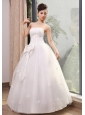 Beading and Hand Made Flowers Decorate Bodice Bowknot A-line Floor-length Wedding Dress For 2013